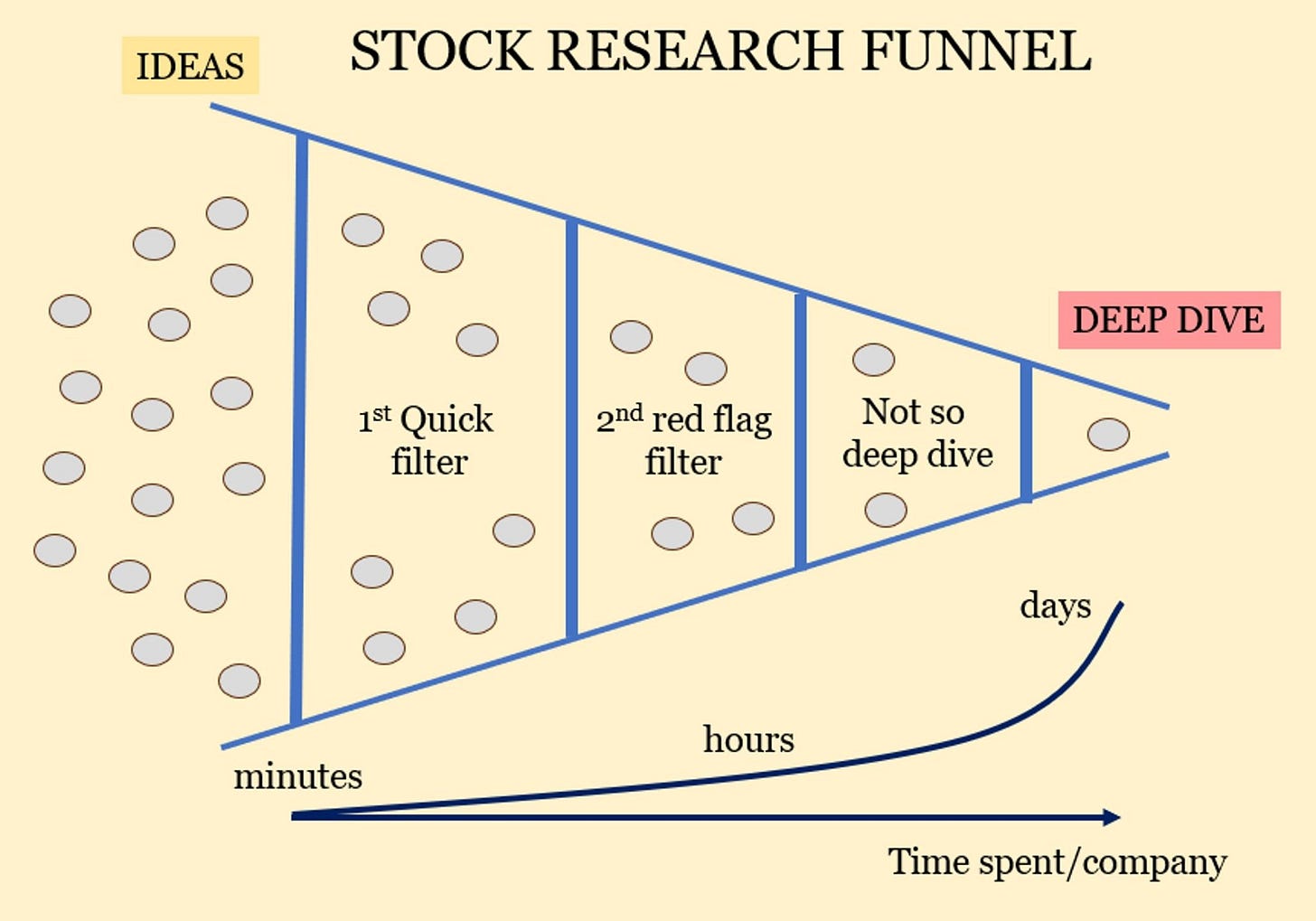 Lots of companies enter the funnel, but only very few receive a deep dive.