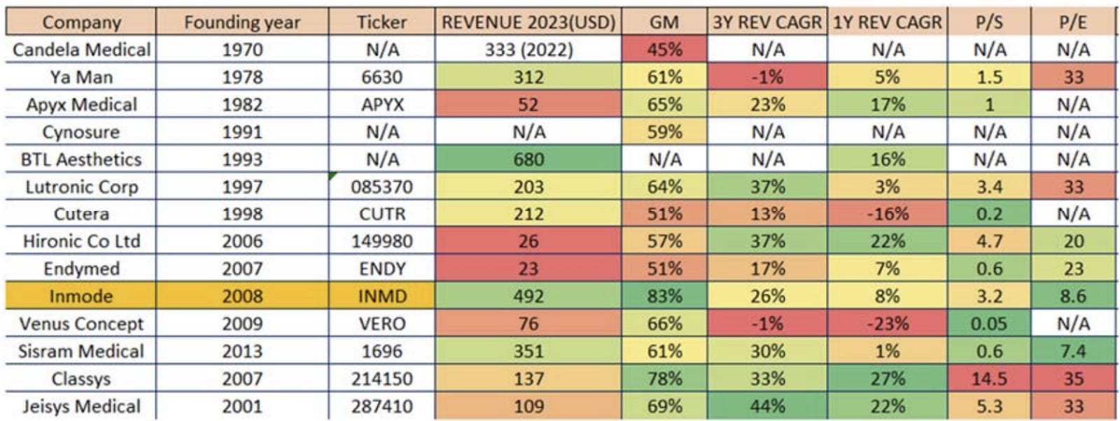 And for some reason, I had not come across it while I was doing all the research on competitors on Inmode. Remember this table?