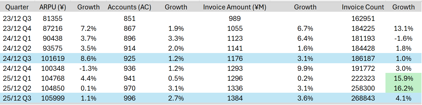 Although this year, they parsed through a lot more invoices, overall growth numbers like ARPU are down.