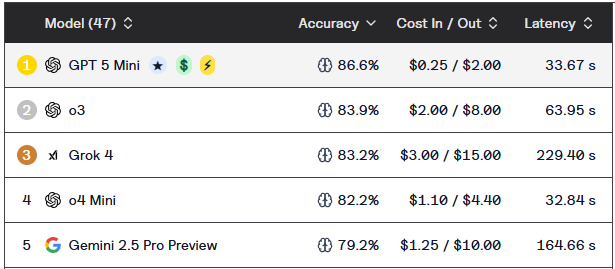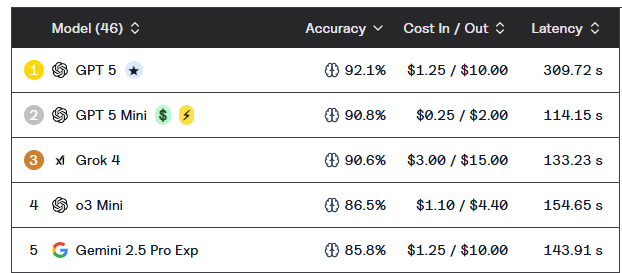 Sadly, at the time of this writing, no updated benchmark on Finance includes GPT-5. I’ll post it in the chat once they do.