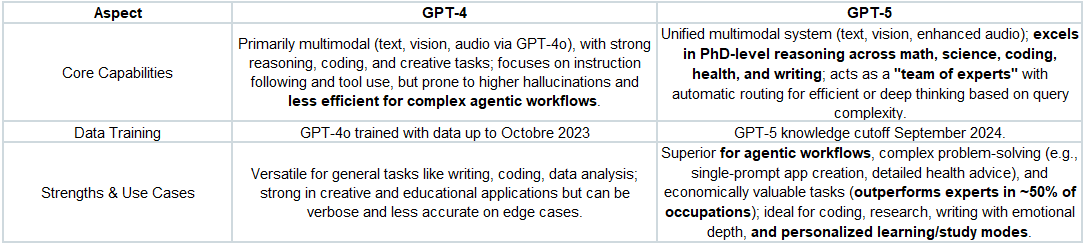 Here’s a quick comparison of the differences between GPT4 and 5: