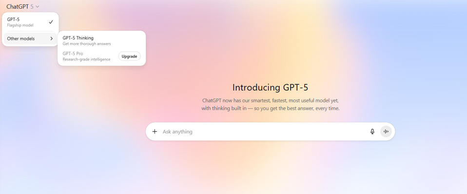 You can select the older models in the Pro Subscription, but just like Grok-4, ChatGPT is taking the approach of a Unified User Experience. -> Based on your query, it will use the best model for that query.