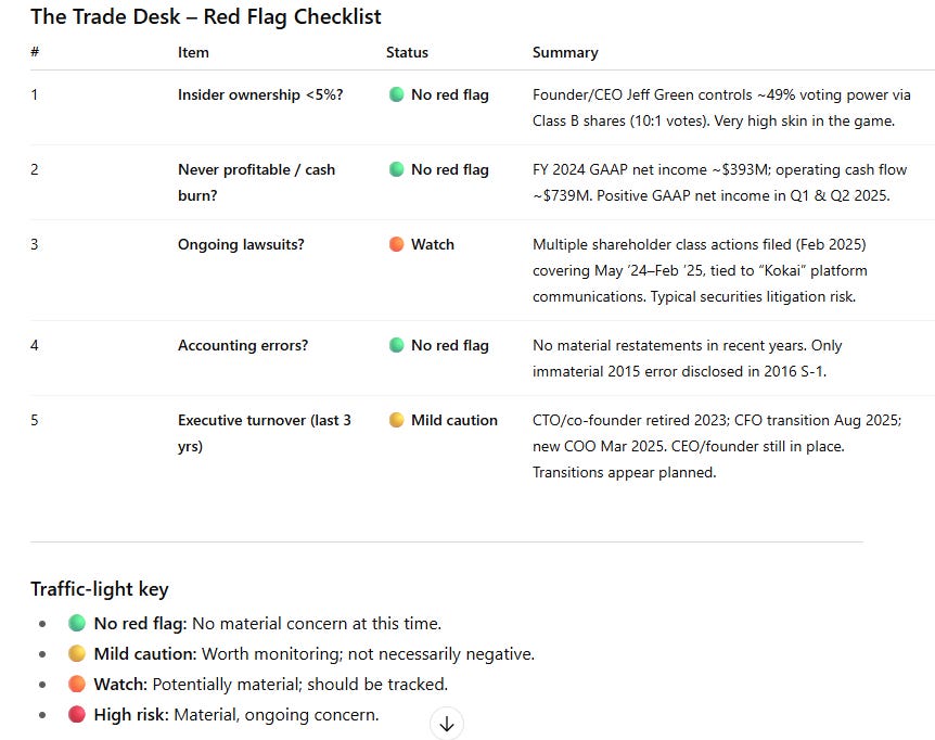Now the results were similar to what we did with Grok-3, but the way the output was presented (in red light format) is way better. It also proposed the “watch category, to say you need to keep tracking this closely.