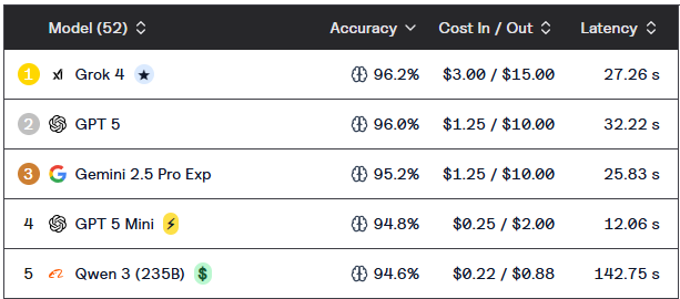In one of the Math benchmarks, GPT-5 takes back the crown from Grok-4