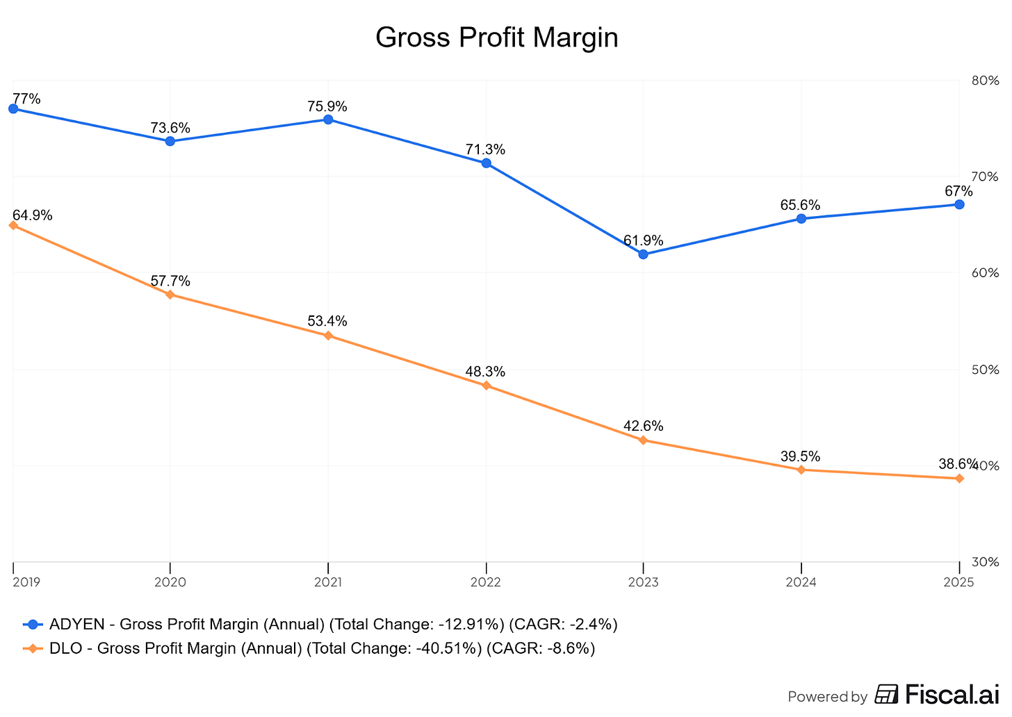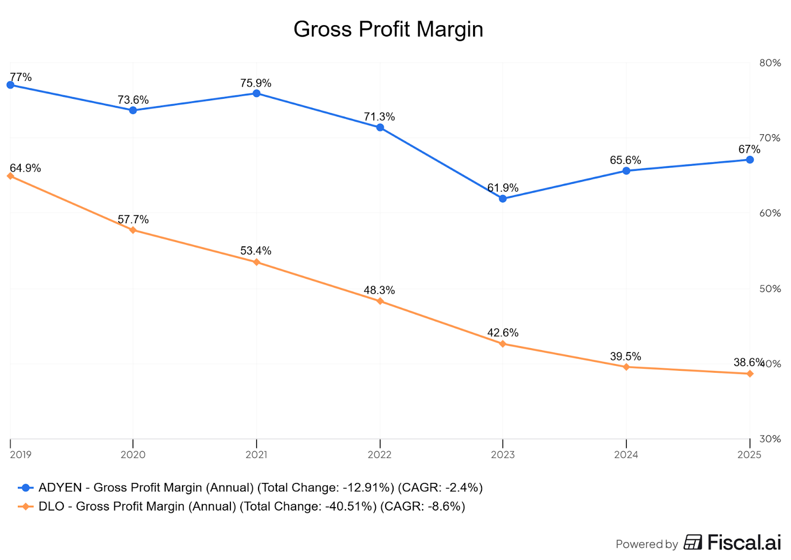 In other words, Adyen is much more geographically present than DLocal. They can be competitors in the purple areas. However, when you look at, for example, the total Latin America revenue between them, Dlocal is a lot bigger (6x).