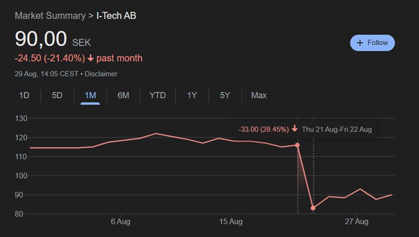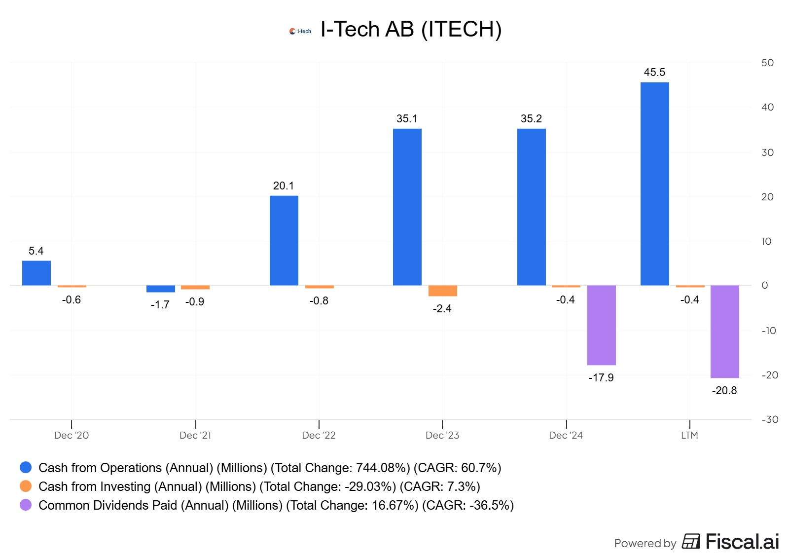The relatively weak sales in Q2 is the result of natural quarterly variation and exceptionally strong sales in Q4 2024 and Q1 2025, further amplified by currency headwinds. Year-to-date sales by the end of June 2025 have grown 9% year-on-year in SEK and 14% in nominal currency. CMP recorded a sales growth of 7% in nominal currency during H1 and released a positive report for the first quarter in their fiscal year. Customers other than CMP have increased their combined volume by 40% during the first half of 2025.