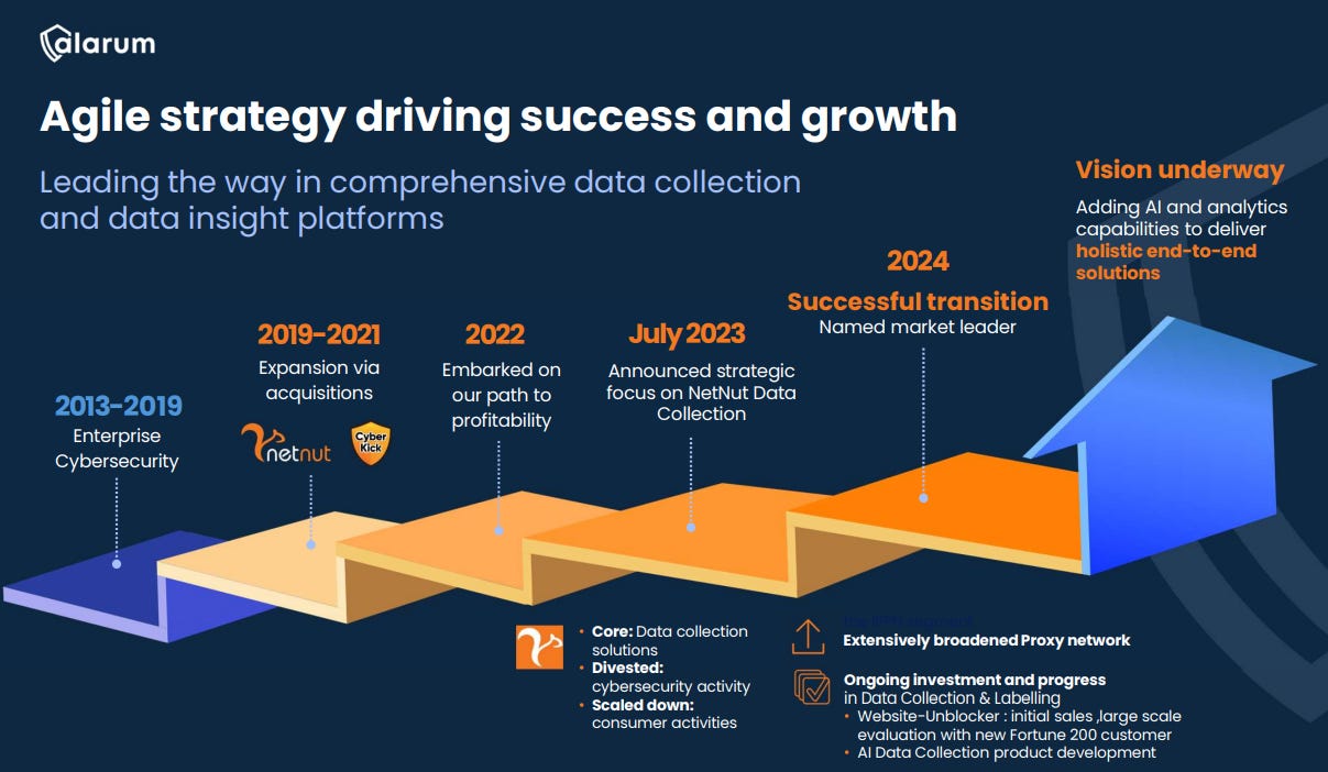 To make it more tangible: Company A wants to do a competitive analysis for their positioning. They need to get data from the web, but anti-bot tools used by certain websites prevent this. Alarum can help them bypass these tools and scrape all that data.